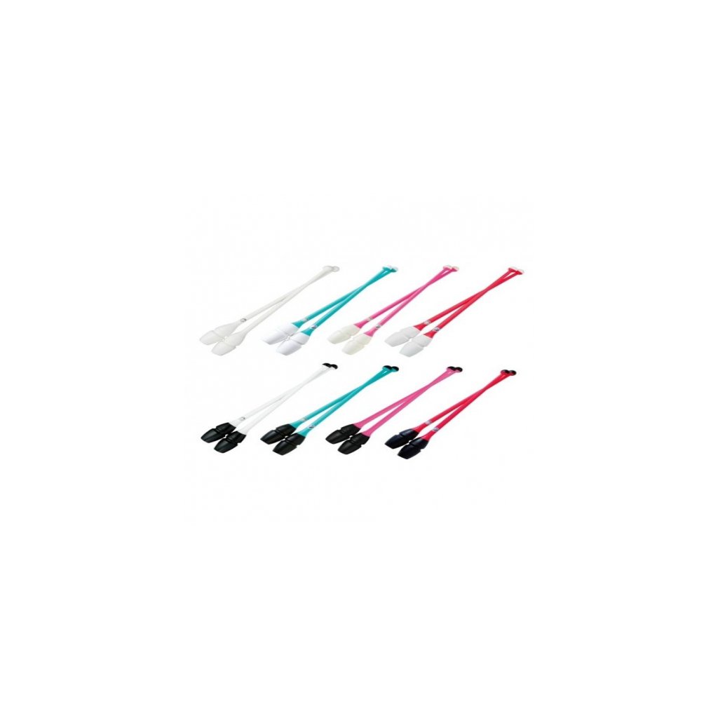 Profesionální kužele Chacott. Jsou plastové s gumovou hlavou, kontaktní, spojovací. Délka 41/45cm. Váha 2x150g. Vyrobeno v Japonsku. Schváleno F.I.G. Skladem.
