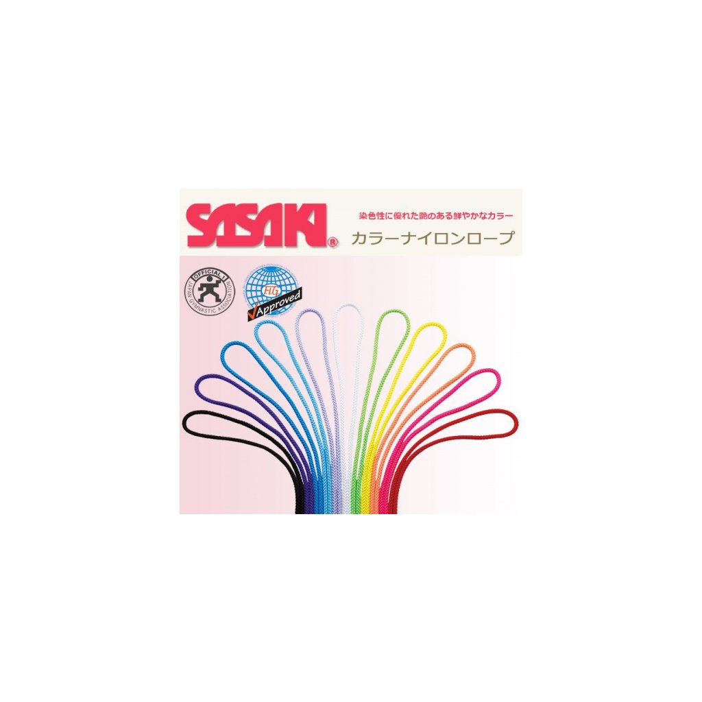Profesionální švihadlo Sasaki na moderní gymnastiku Růžovy. Materiál: Nylon. Vzhled: výrazně lesklý. Délka 3m,tlouštka 1cm, Schváleno F.I.G. Skladem.