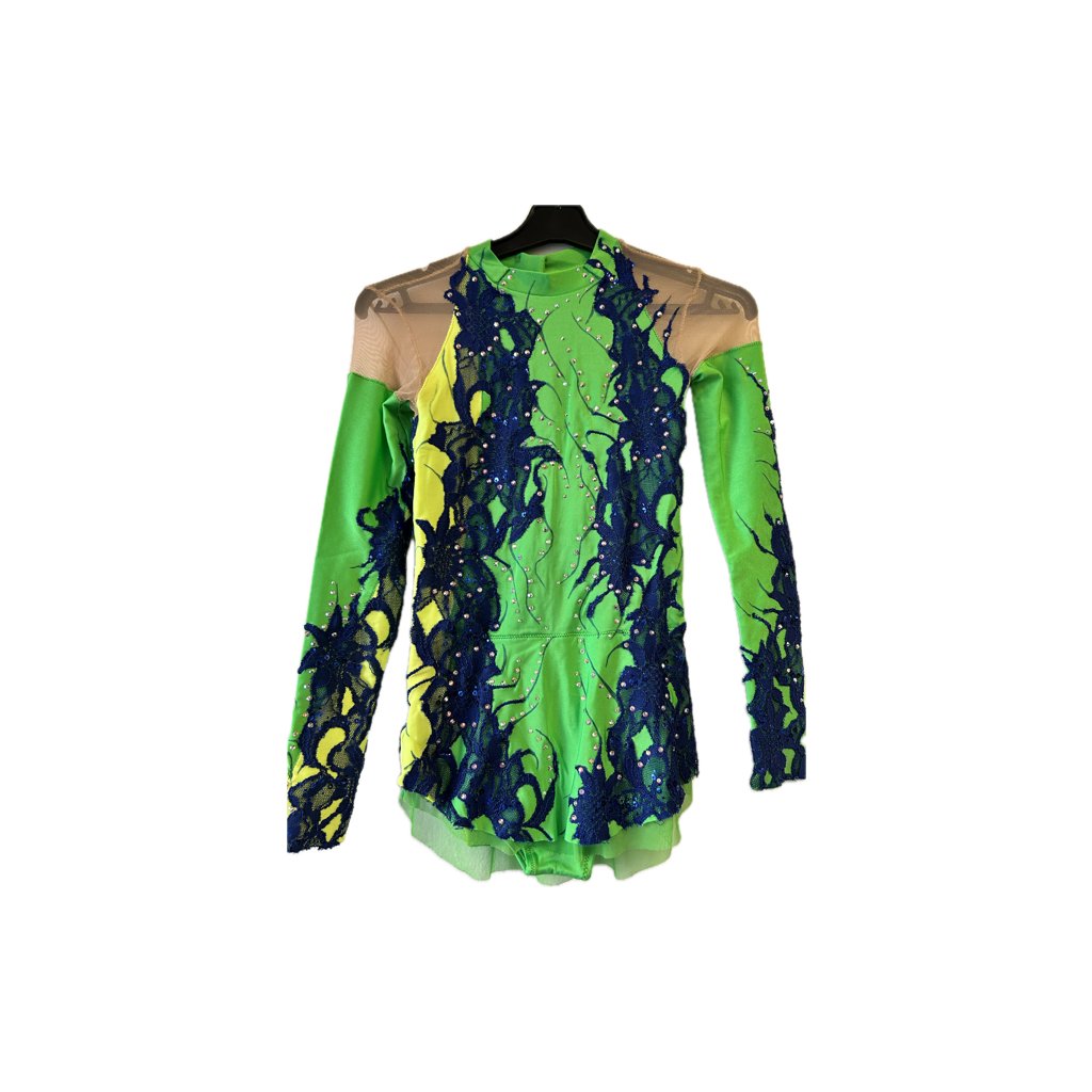 Výrazný, krásný trikot na moderní gymnastiku. Rozměry od ramene do rozkroku 64cm, prsa 30cm, pas29cm, boky 30cm. rukávy 51cm.