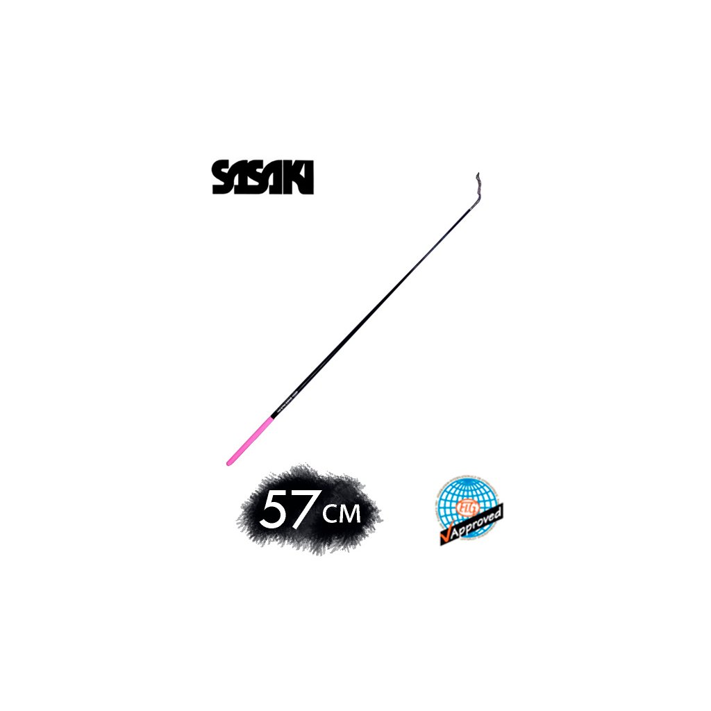Tyčka ke stuze Sasaki M-700JK BxP - černá s růžovým úchytem pro moderní gymnastiku. Materiál: skelné vlákno, gumový úchyt růžový. Délka 57cm, Součástí je karabinka a plastový, průhledný obal. Skladem
